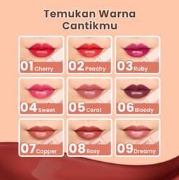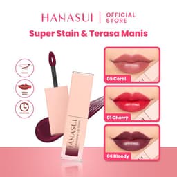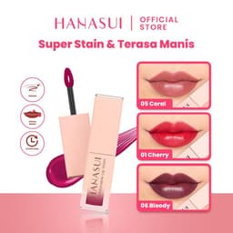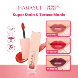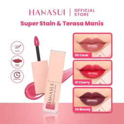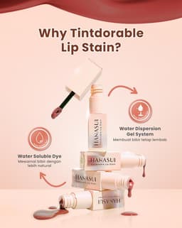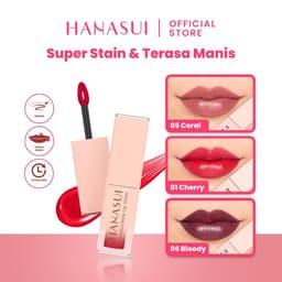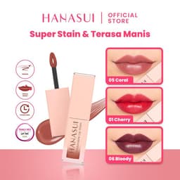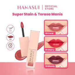 HANASUI TINTDORABLE LIP STAINT LEMBAB DI BIBIR DENGAN 9 PILIHAN WARNA Hanasui Tintdorable Lip Stain adalah lip tint dengan tekstur aqua jelly yang ringan dan memberikan warna cerah natural yang tampak alami dan berkilau. Dengan tekstur yang nyaman, ringan, membuat bibir tetap lembap, dan warna yang tahan lama. Mengandung vitamin E sebagai antioksidan dan hydrolized milk protein untuk meningkatkan hidrasi dan kelembaban bibir Variant Shades : 01. Cherry 02. Peach 03. Ruby 04. Sweet 05. Coral 06. Bloody 07. Copper 08. Rosy 09. Dreamy Keunggulan : Aqua Jelly Tint Transferproof Warna natural dengan kilau alami Tahan lama Formula ringan Bare lip sensation No-alcohol added. Pelembap (double moisturizing) dengan Vitamin E & Hydrolyzed Milk Protein) Terasa manis / tidak pahit Kandungan Utama : Vitamin E Melembapkan dan menutrisi bibir agar tetap lembab. Hydrolyzed Milk Protein. Meningkatkan hidrasi kulit bibir. Water Dispersion Gel System. Gel yang terdispersi di dalam air membentuk lapisan film aqua gel di bibir dan menahan air supaya tetap lembab. Water Soluble Dye. Mewarnai bibir dengan lebih natural. Cara Pakai : FULL LIPS : Gunakan ujung aplikator untuk mengaplikasikan pulasan lip tint hingga ke bagian ujung bibir Gunakan hingga seluruh warna merata di bibir cantikmu OMBRE LIPS : Siapkan 2 warna lip tint yang berbeda. Aplikasikan lip tint untuk warna dasar secara tipis dan shade yang lebih tua pada bagian tengah bibir, lalu ratakan. Rekomendasi Ombre Lips : Sweet Look : Warna nude (05 Coral) – Warna merah (01 Cherry) Bold Look : Warna merah dengan hint orange (02 Peach) – Warna merah gelap (06 Bloody) Dapat juga bereksperimen dengan perpaduan warna lainnya atau dipadukan dengan Hanasui Mattedorable Lip Cream. BPOM : Lip Stain 01 Cherry NA18211301010 Lip Stain 02 Peachy NA18211300986 Lip Stain 03 Ruby NA18211300987 Lip Stain 04 Sweet NA18211300988 Lip Stain 05 Coral NA18211301272 Lip Stain 06 Bloody NA18211301675 Lip Stain 07 Copper NA18221300884 Lip Stain 08 Rosy NA18221300882 Lip Stain 09 Dreamy NA18221300885
