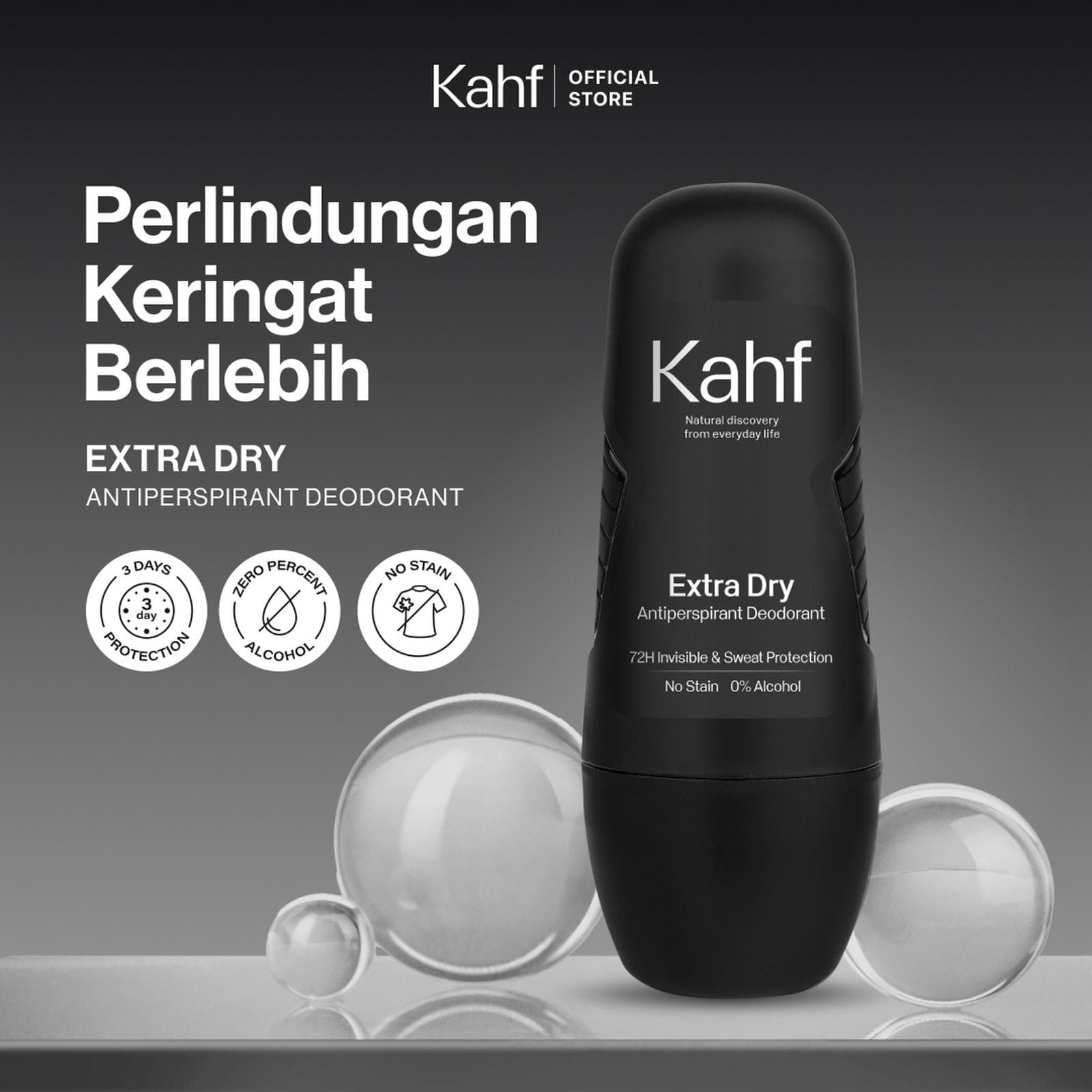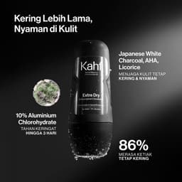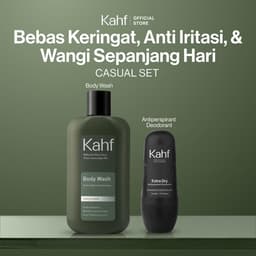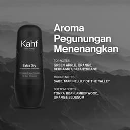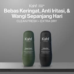 Kahf Deodorant Roll On Antiperspirant 45 ml Kahf menghadirkan Nature Charged Antiperspirant Deo pertama di Indonesia yang memberikan perlindungan maksimal terhadap 3 jenis keringat (akibat aktivitas fisik, panas, dan stress). Dengan teknologi SmartSync Deo Care Technology, deodorant ini mencegah bau tidak sedap dan keringat hingga 72 jam, memberikan kesegaran sepanjang hari tanpa meninggalkan noda pada pakaian. Deodorant ini tersedia dalam 3 pilihan varian, yaitu: - Clean Fresh – Cocok untuk pria aktif yang sering terpapar kuman. - Cooling Power – Diformulasikan untuk kulit yang sulit beradaptasi dengan suhu panas. - Extra Dry – Solusi bagi pria dengan keringat berlebih akibat aktivitas sehari-hari. Teknologi SmartSync Deo Care: 1. Smart-Release Antiperspirant-Deo Molecules: Memberikan perlindungan maksimal hingga 72 jam dari bau badan dan tiga jenis keringat - panas, fisik, stres. 2. Nature-Charged Formula: Kombinasi natural extract, 0% alkohol, dan 3x Allantoin, untuk melindungi kulit ketiak dari kemerahan, iritasi, gatal, dan hiperpigmentasi yang menyebabkan kulit menghitam. 3. Anti-Staining & Invisible Formula: Mudah menyerap kulit dan tidak meninggalkan noda pada pakaian. 4. Anti-malodor Fragrance Technology: Kombinasi aroma kesegaran alam khas Kahf yang wangi dan melawan bau badan hingga ke tingkat molekul. Cara Penggunaan: 1. Gunakan pada kulit ketiak yang sudah dibersihkan dan kering. 2. Gunakan sebanyak 1 sampai 3 olesan. PERHATIAN Jangan gunakan pada kulit yang terluka atau iritasi untuk mencegah perih dan reaksi alergi.