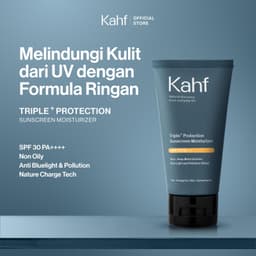 Kahf Sunscreen Moisturizer Triple+ Protection SPF 30 PA+++ 30 ml Kahf menghadirkan sunscreen khusus pria yang bekerja sekaligus sebagai pelembab wajah dengan tekstur yang ringan, mudah menyerap, serta tidak membuat kulit terasa lengket. Diformulasikan dengan kadar SPF 30 PA+++ dan Skin-Deep Moist Actives, sunscreen ini melindungi kulit dari paparan sinar matahari sekaligus melembapkannya. Diperkaya dengan ekstrak Japanese Mugwort, kulit menjadi lebih terlindungi dari radiasi sinar Blue Light akibat perangkat digital. Manfaat: - Melindungi kulit dari paparan sinar UVA dan UVB sehingga kulit tidak tampak gelap dan tampak sehat. - Melindungi kulit dari efek buruk polusi udara. - Melindungi kulit dari efek buruk artificial blue light. Komposisi Unggulan: - Skin-Deep Moist Actives: Menutrisi dan menjaga kelembapan alami kulit pria. - Japanese Mugwort: Menjaga kulit dari dampak negatif polusi serta melindungi kulit dari radiasi sinar blue light. - 7 Soothing Botanicals: Diperkaya dengan bahan-bahan alami yang membuat sunscreen mudah menyerap serta aman di semua jenis kulit. Cara Penggunaan: 1. Gunakan 20 menit sebelum beraktivitas sebanyak 2 ruas jari. 2. Oleskan secara merata pada seluruh wajah dan leher 3. Diamkan produk sesaat hingga menyerap sempurna 4. Ulangi pemakaian setiap 2 jam (outdoor) atau 4–6 jam (indoor) dan gunakan setiap hari. 5. Bersihkan wajah setelah beraktivitas/sebelum tidur dengan Kahf Face Wash untuk kulit yang lebih bersih. Untuk hasil yang maksimal, kombinasikan penggunaan dengan rangkaian skincare Kahf lainnya dengan tahapan: 1. Kahf Face Wash 2. Kahf All-in-One Power Toning Face Spray 3. Kahf Brightening and Texture Refining Face Serum 4. Kahf Triple+ Protection SPF 30 PA+++ Sunscreen Moisturizer PERHATIAN Hanya untuk pemakaian luar. Hentikan penggunaan jika terjadi iritasi atau kemerahan.