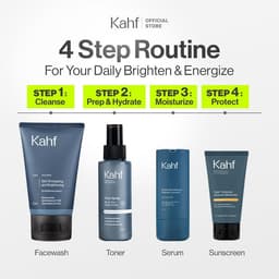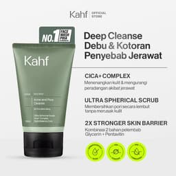 Kahf Face Wash Skin Energizing and Brightening 100 ml Kahf menghadirkan sabun pembersih wajah pria dengan kombinasi HydroBalance™ dan Pure Cleanse yang dapat menjadikan kulit wajah bersih dan lembap secara menyeluruh hingga ke pori-pori. Diperkaya dengan ekstrak Moroccan Mint dan Mediterranean Grapefruit, produk ini memberikan sensasi segar sekaligus membantu mencerahkan kulit. Dengan mild formulation yang lembut di kulit dan teruji secara dermatologis, face wash ini aman untuk penggunaan sehari-hari. Cocok untuk: Semua jenis kulit. Manfaat: - Membuat kulit terasa lembab dan halus. - Membantu mencerahkan kulit. - Membersihkan kulit dari kotoran hingga ke pori-pori. - Menyegarkan kulit Komposisi Unggulan: - Moroccan mint: Memberikan sensasi dingin sehingga kulit terasa segar dan berenergi. - Mediterranean Grapefruit: Kaya akan vitamin C dan Antioksidan yang membantu mencerahkan wajah. - HydroBalance: Menjaga kelembapan alami kulit tanpa membuatnya kering. - Pure Cleanse: Mampu membersihkan kulit hingga ke dalam pori-pori. Cara Penggunaan: 1. Bilas wajah dengan air hangat untuk membuka pori-pori. 2. Oleskan pada wajah hingga merata. 3. Diamkan selama 30 detik - 1 menit. 4. Bilas wajah dengan air dingin hingga bersih. Untuk hasil yang maksimal, gunakan dua kali sehari (pagi dan malam) dan kombinasikan penggunaan dengan rangkaian skincare Kahf lainnya dengan tahapan: 1. Kahf Face Wash Skin Energizing and Brightening 2. Kahf All-in-One Power Toning Face Spray 3. Kahf Brightening and Texture Refining Face Serum 4. Kahf Triple+ Protection SPF 30 PA+++ Sunscreen Moisturizer PERHATIAN Hindari kontak dengan mata. Jika terkena mata, segera bilas dengan air bersih.