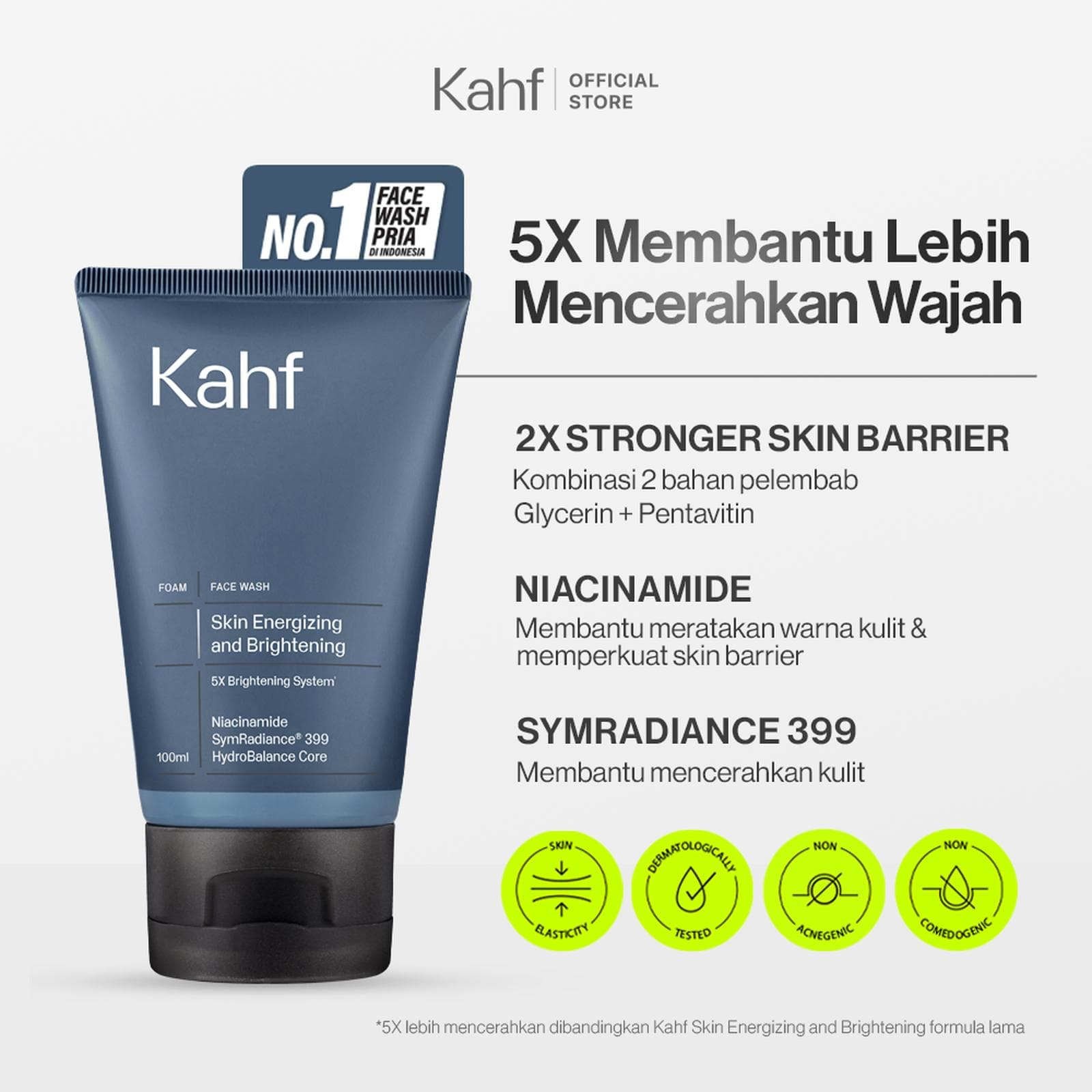NEW LOOK BETTER FORMULA! Kahf Face Wash Skin Energizing and Brightening 100 ml - Sabun Cuci Muka Pria Membantu Mencerahkan Wajah - Daily Use, Niacinamide, Symradiance 399, Hydrating Skin Barrier, Moisturizer, Hydration, Lembab, Instan, Oil, Minyak - 2in1 Acne Amino