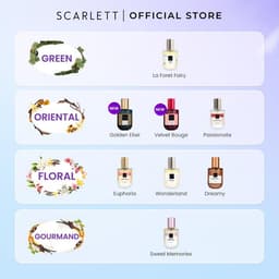 Scarlett Whitening Extrait De Parfum Velvet Rouge 30ml Scarlett Whitening Extrait De Parfum dilengkapi dengan Benefit Wellness well-being technology yang akan membuat percaya diri, relax ketika digunakan dan membuat semakin produktif sehari-hari! a Perfection untuk berikan kesegaran dan keharuman mewah dalam setiap semprotan dengan kemasan yang Ready To Go cocok untuk temani harimu, mudah dibawa kemana pun dan kapan pun tanpa takut pecah. Floral Oriental Size - 30ml Gender - Unisex | Woman Top Notes - Mandarin, Galbanum, Ylang Middle Notes - Tuberose, Jasmine/White Floral, Orange Flower Base Notes - Vanilla, Tonka Bean, Musk Semprotkan Scarlett Whitening Extrait De Parfum di area titik nadi dan area leher agar wangi tahan lebih lama. BPOM NA18240604434