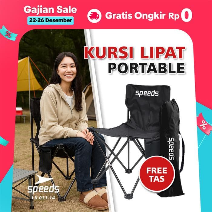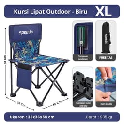 Speeds Kursi Lipat Outdoor Kursi Lipat Camping Portable Kuat Serbaguna Bahan Oxford Polyester Furnitur Berkemah Camping Furniture Indonesia 031-14 Hitam - 13 HITAM XL